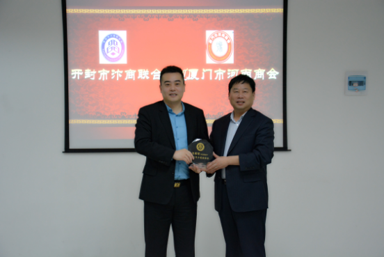 會后的授牌儀式上,朱主席代表開封市工商聯(lián)、開封市汴商聯(lián)合會正式授予馬明軍董事長開封市汴商聯(lián)合會常務(wù)副會長獎牌。